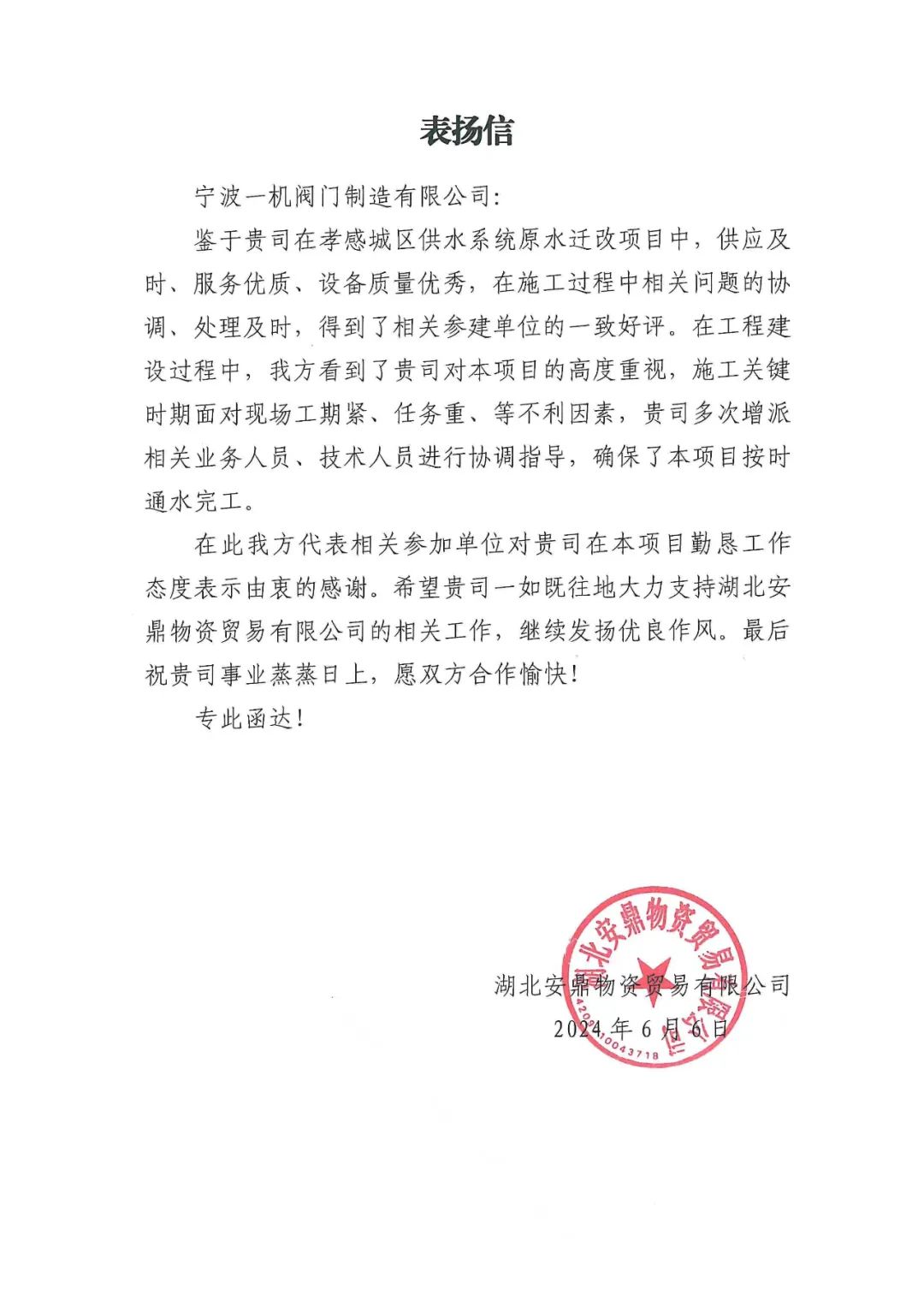付出總有回報(bào),客戶(hù)對(duì)我們的認(rèn)可是對(duì)我們最大的鼓勵(lì)!讓我們以這份榮耀為新的起點(diǎn),繼續(xù)努力,不斷創(chuàng)新,為客戶(hù)創(chuàng)造更多的價(jià)值,為行業(yè)發(fā)展貢獻(xiàn)更大的力量。讓一機(jī)閥門(mén)的榮耀在歲月的長(zhǎng)河中熠熠生輝,永不褪色!在這個(gè)特別的 2024 年 6 月6日,讓我們一起為一機(jī)閥門(mén)的榮耀歡呼,一起期待更加輝煌的明天!